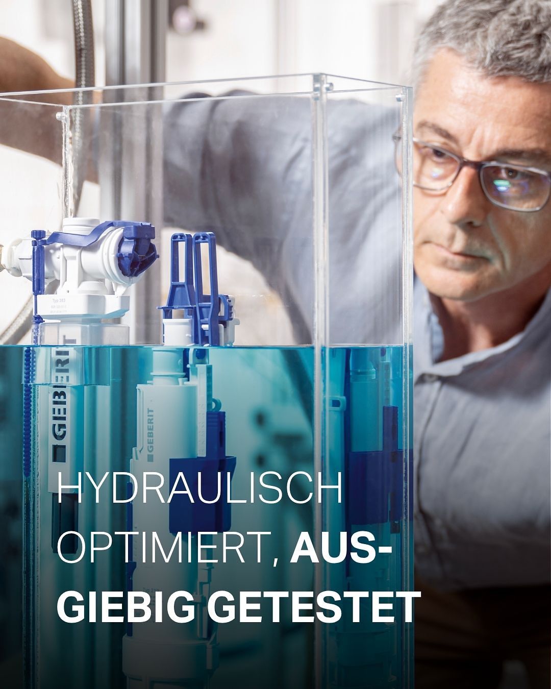 Maximale Spülleistung, minimaler Verbrauch - dank hydraulisch optimierter Technik.Das Geberit WC-System reinigt präzise, leise und gründlich.Technik, die man sieht, nicht hört.